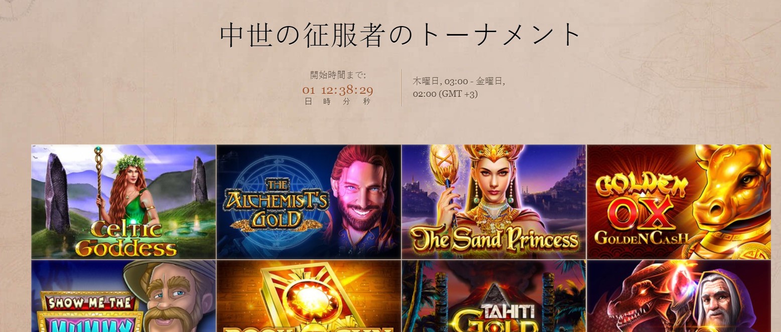 征服者、とは何ともエキサイティングな聞こえだと思いませんか?このトーナメントが始まったら、盾と剣をとって武装して準備を! どのゲームをプレイしても、あなたは自動的に1000コンプ・ポイントのレースに登録されます!ジョイカジノjoycasino.jpでの中世の征服者トーナメントに参加してください。
