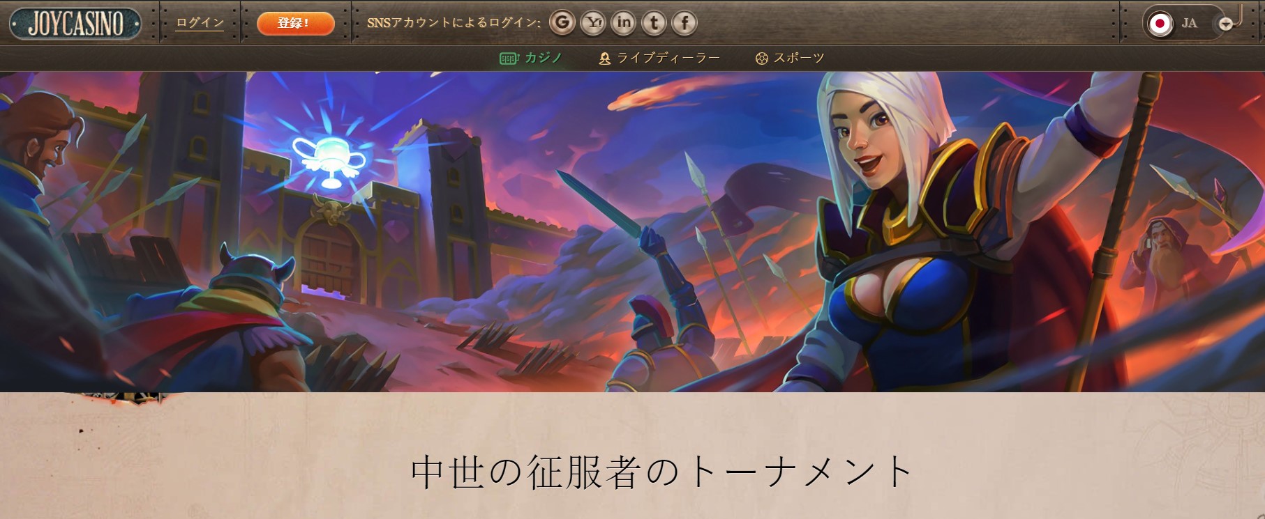 征服者、とは何ともエキサイティングな聞こえだと思いませんか?このトーナメントが始まったら、盾と剣をとって武装して準備を! どのゲームをプレイしても、あなたは自動的に1000コンプ・ポイントのレースに登録されます!ジョイカジノjoycasino.jpでの中世の征服者トーナメントに参加してください。